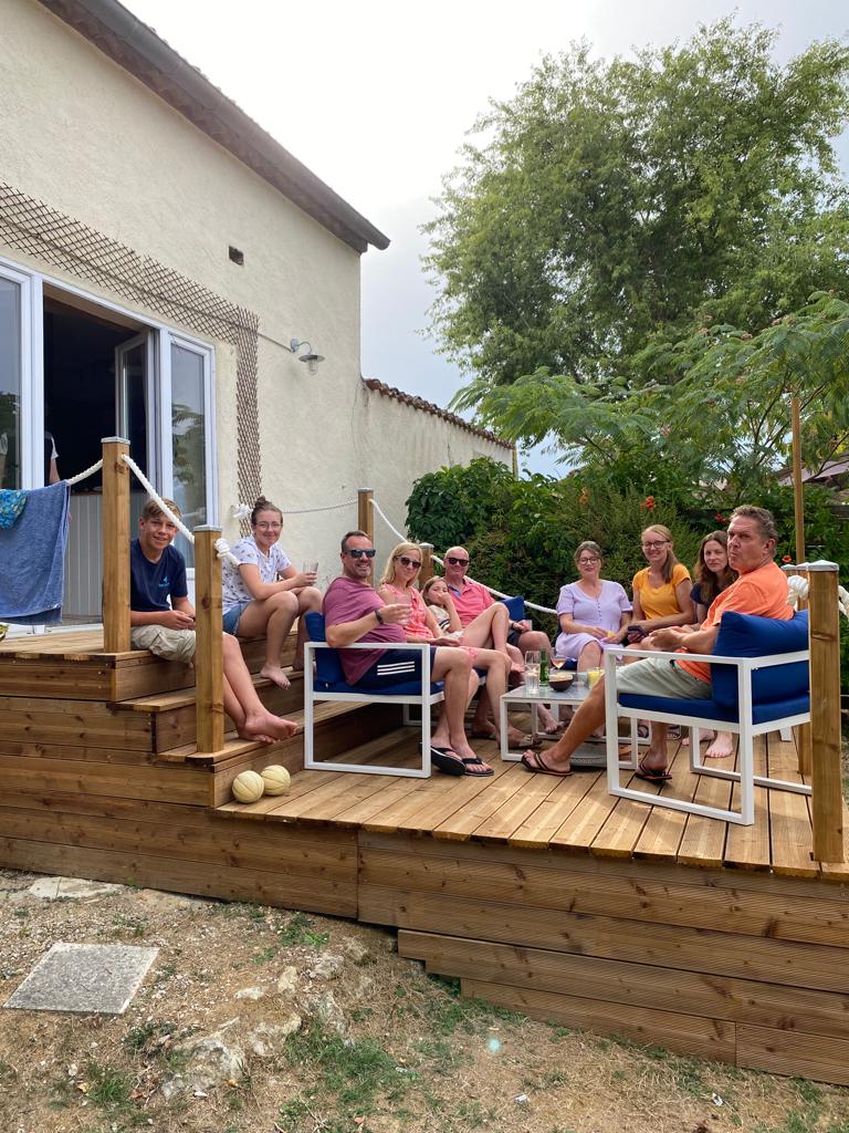 The decking overlooking the garden and open farmland seats plenty of people. We have spent many evenings with 12 people relaxing and star gazing. We also have plans to extend this decking in 2025 to make it much wider and therefore more adaptable.